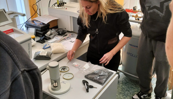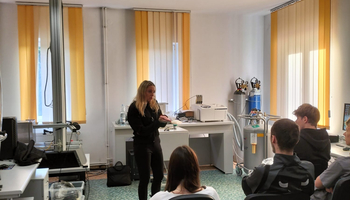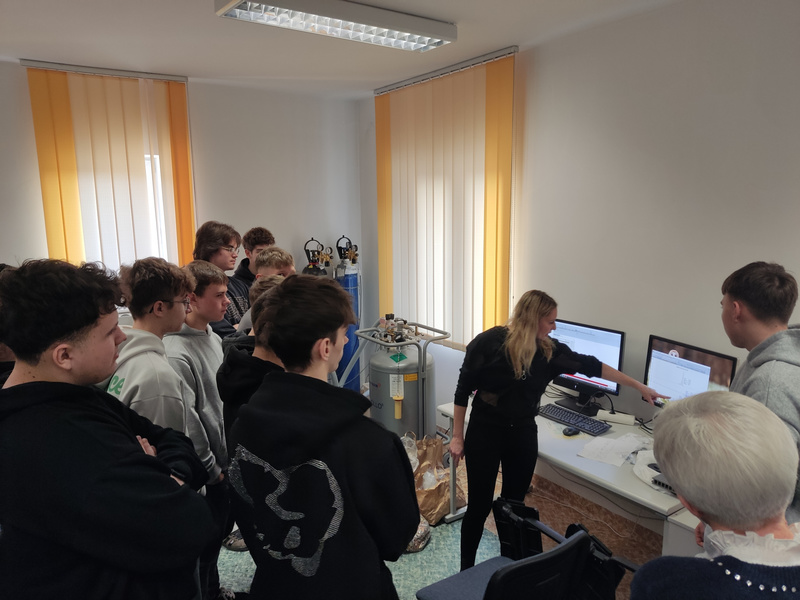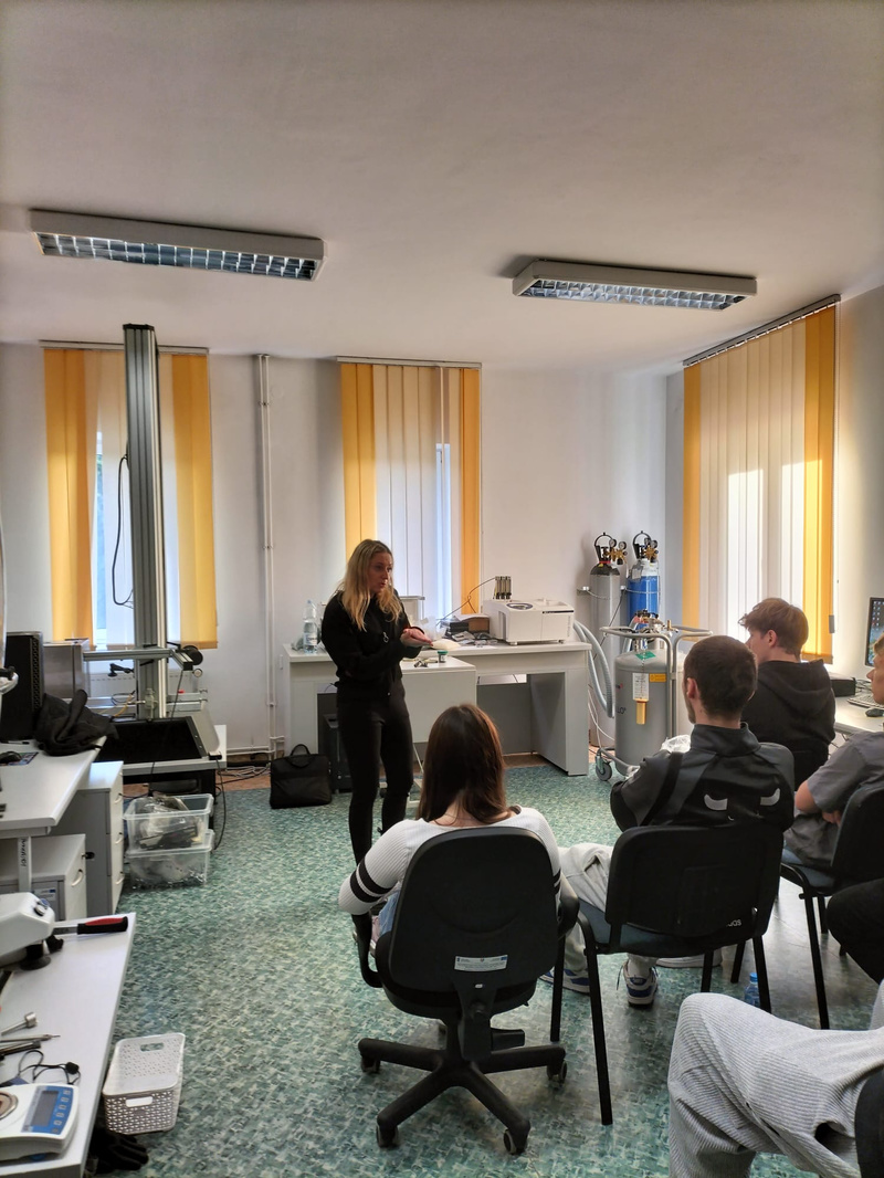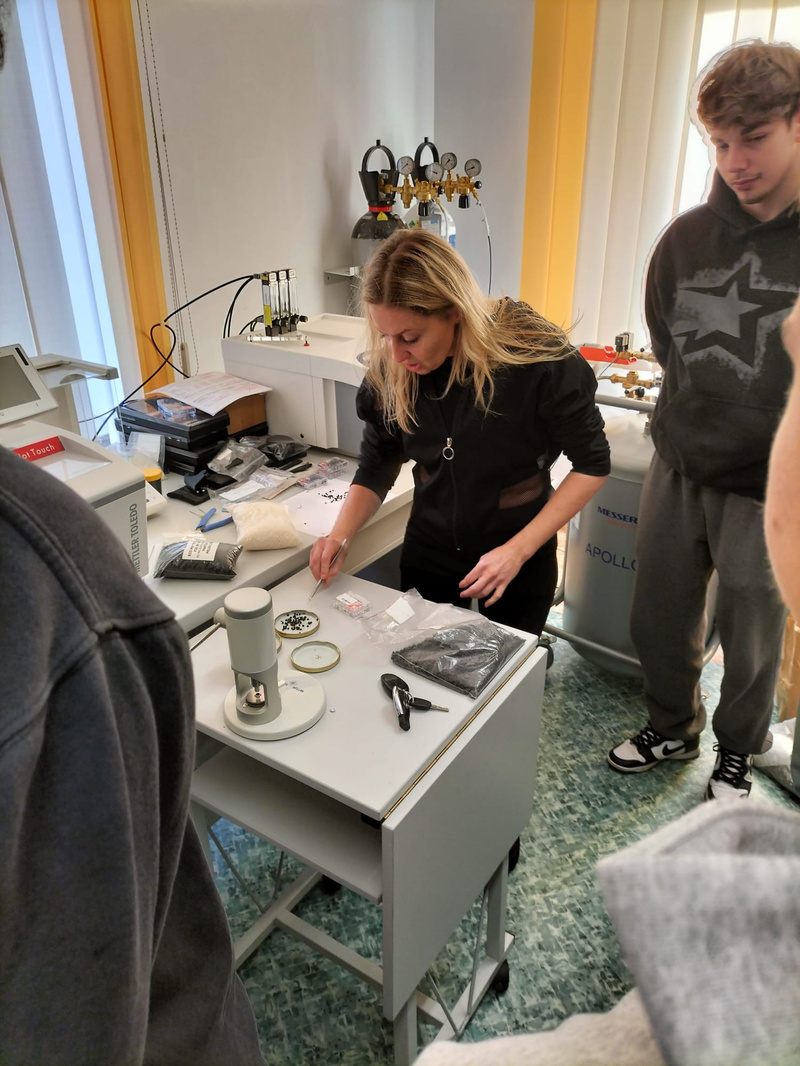 Warsztaty poprowadziła dr inż. Monika Stącel, a ich tematem była analiza materiałów polimerowych z wykorzystaniem skaningowej kalorymetrii różnicowej (DSC). Podczas zajęć uczniowie badali próbkę oryginalną oraz regranulat typu PP, określając moment topnienia, krystalizacji oraz zmian właściwości materiału. Dzięki metodzie DSC mogli także prześledzić, w jaki sposób analizuje się tworzywa przed procesem ich przetwarzania oraz jak ocenia się, czy dana mieszanka składa się z jednego, czy kilku rodzajów polimerów.